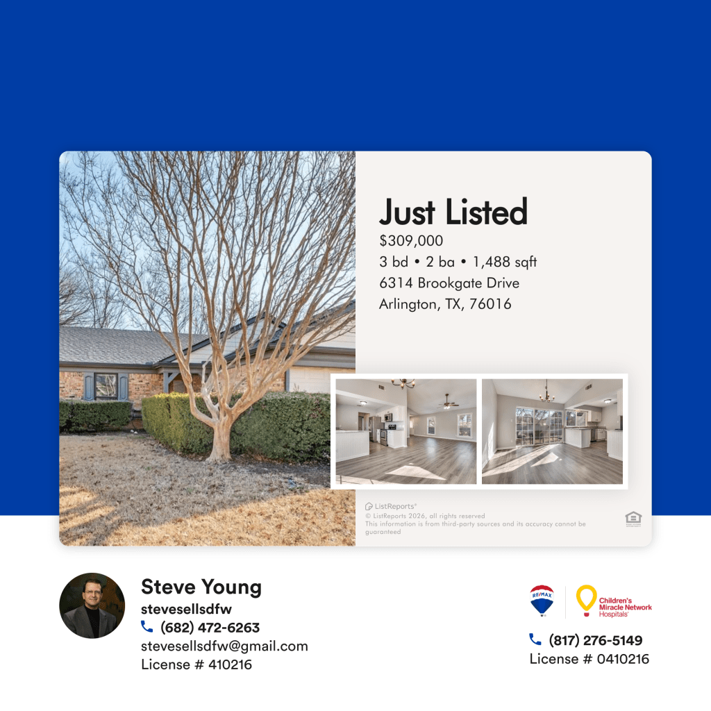 Steve Young with RE/MAX 817-276-5149 or steve@steveyoung.pro